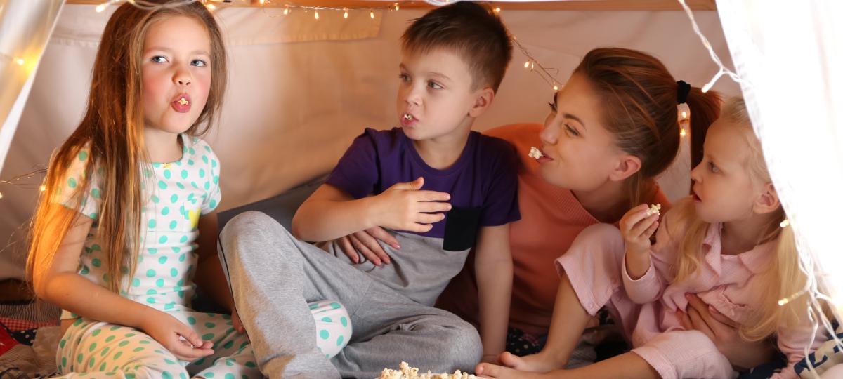 A kto powiedział, że piknik można zorganizować tylko w ogrodzie, czy na łące? Wystarczy kocyk, mały namiocik bądź tipi i zaczyna się zabawa. Dzieciaki chętnie zaaranżują wnętrze: poduszki, pluszaki, zabawki. Warto zadbać też o klimat i zamontować w środku lampeczki lub kolorowe światełka. Przygotujmy smaczne przekąski i gotowe.